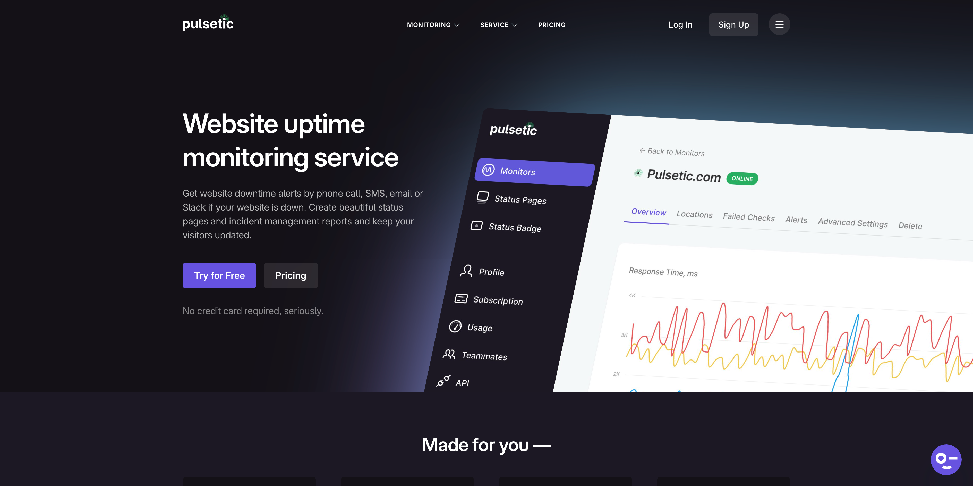 Pulsetic's main selling point is beautiful, designer-friendly status pages. The free plan includes unlimited status pages, which is more generous than any other free website monitoring tool on this list for that specific feature.